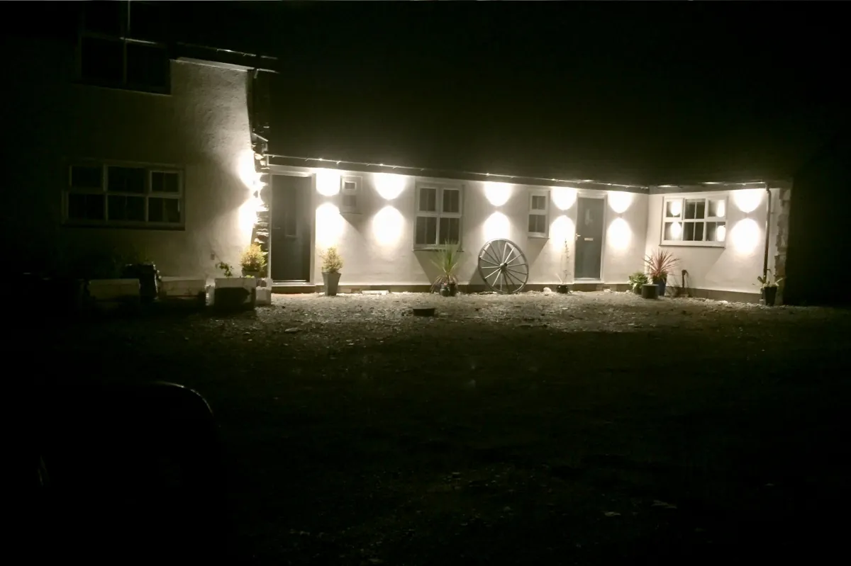 Weatherproof outdoor electrical solutions including lighting and power for gardens and exterior spaces.