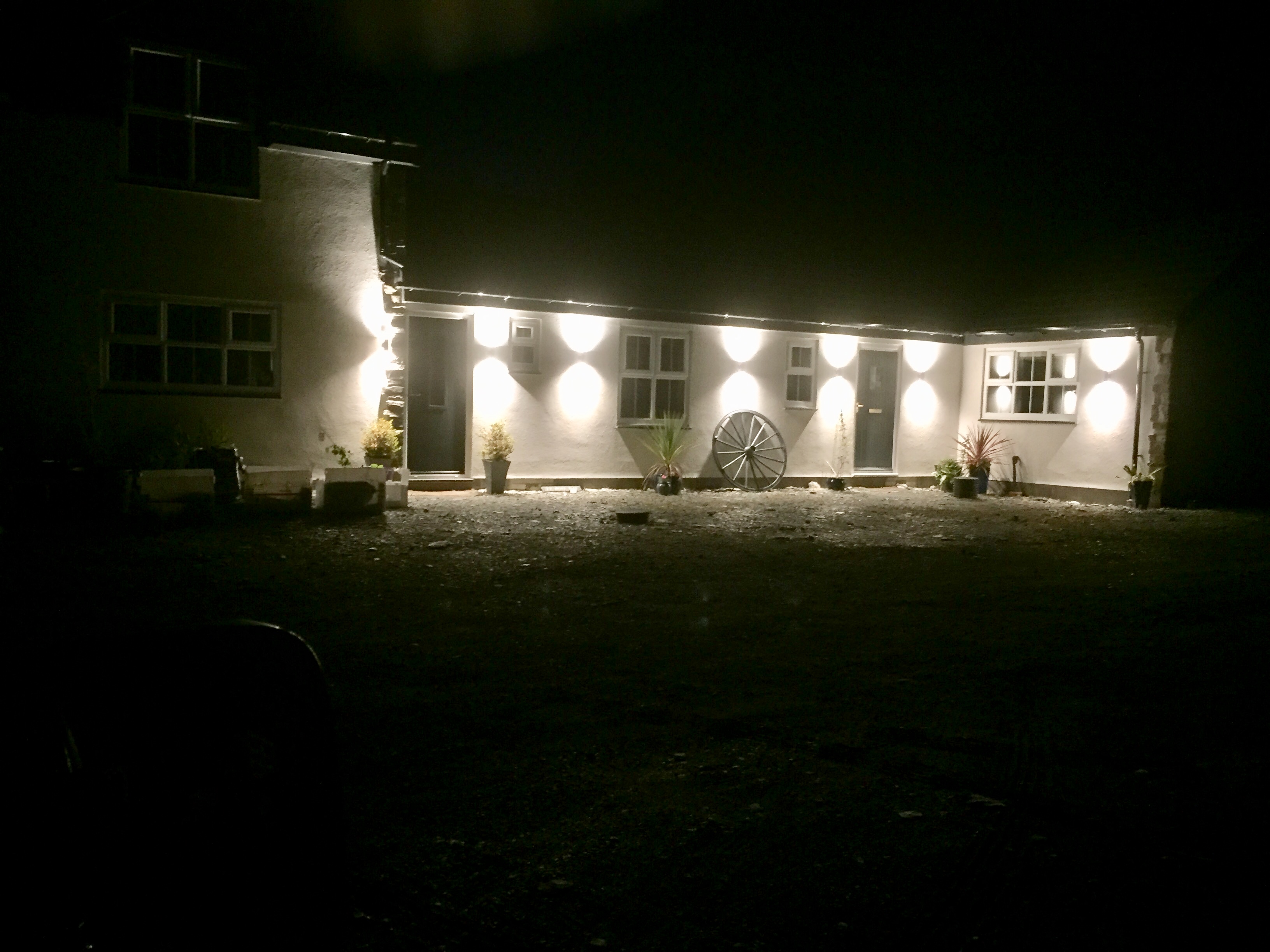Weatherproof outdoor electrical solutions including lighting and power for gardens and exterior spaces.